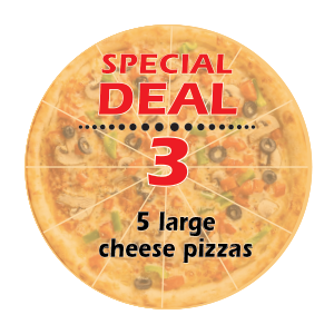 Enjoy our 5 Medium Cheese Pizza Special – perfect for family gatherings, parties, or simply satisfying your pizza cravings. Made with our signature crust and topped with a generous layer of melted cheese, this delicious deal offers great value and unforgettable flavor. Order now and treat yourself to the ultimate cheesy delight!